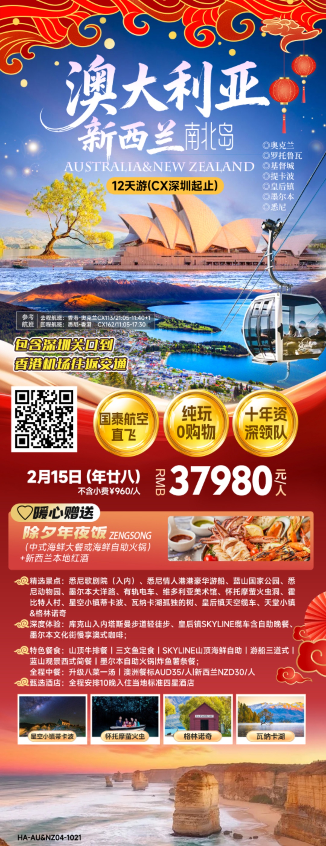 澳大利亞&新西蘭南北島 12 天(CX 深圳起止)