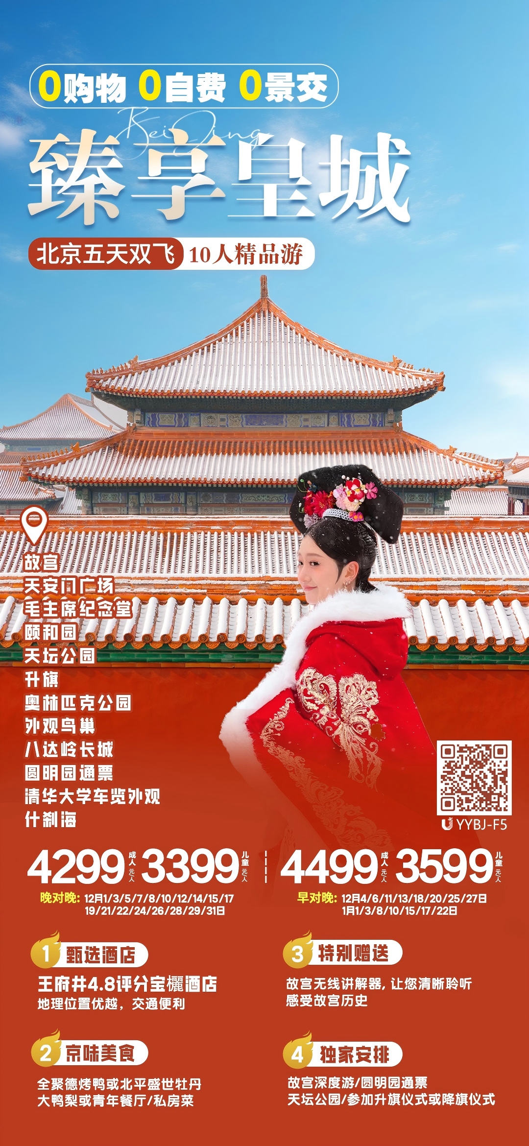 —臻享皇城—尊享北京五天雙飛 10 人精品游(0 購(gòu)物 0 暗店)