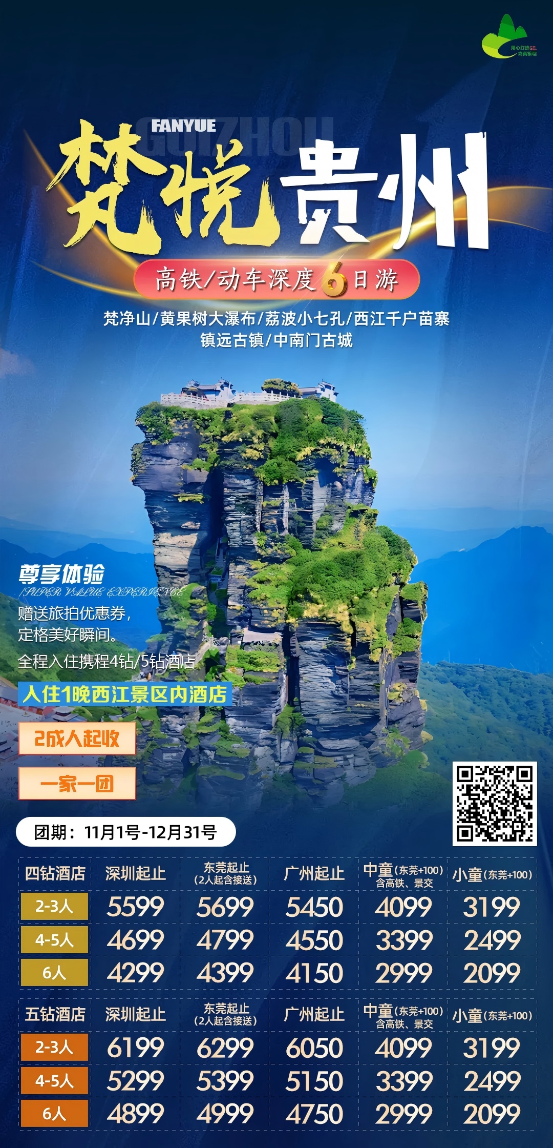 門票:含黃果樹大門票、含梵凈山大門票、含西江苗寨大門票、含小七孔大門票。