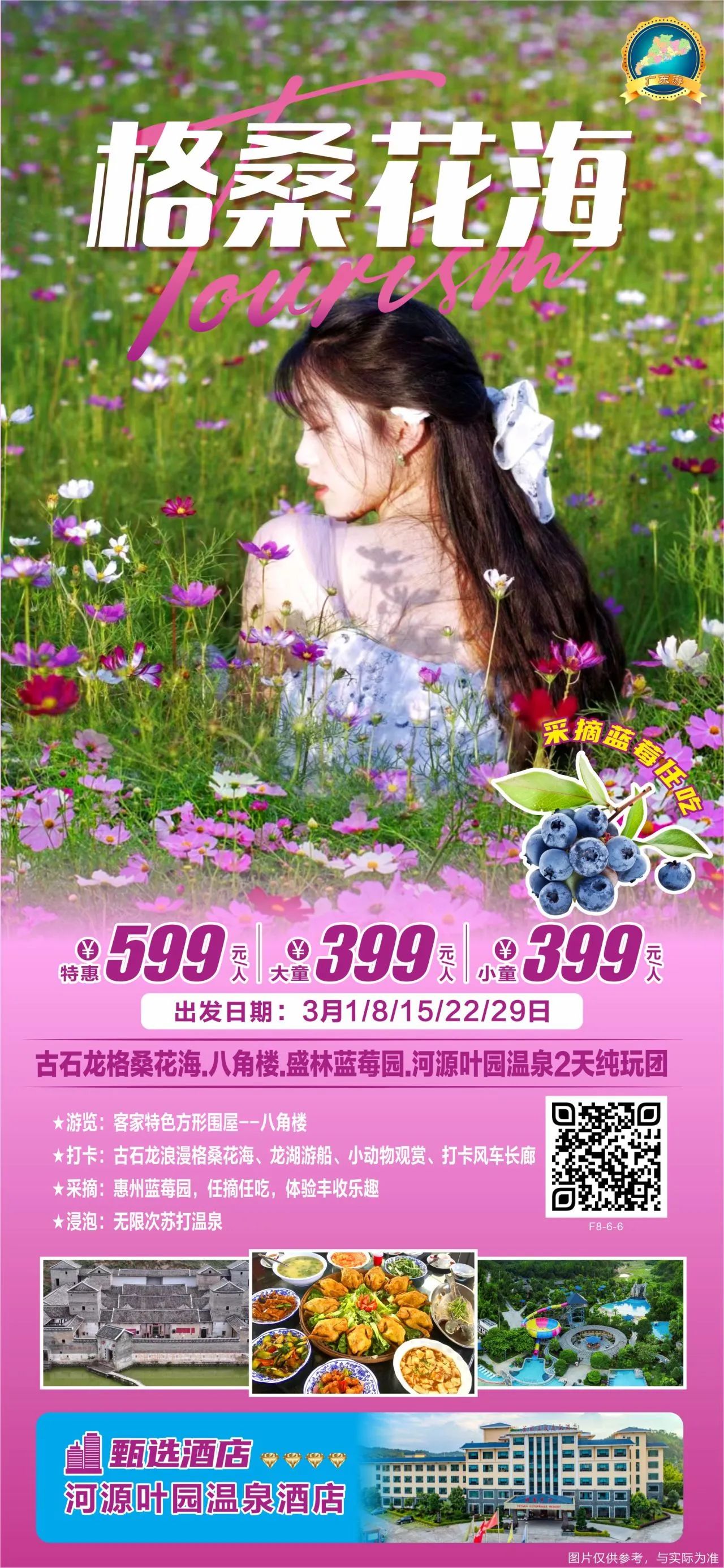 您當(dāng)前的位置:首頁線路周邊旅游線路河源線路客家風(fēng)情 古石龍格桑花海.八角樓.盛林藍莓園.河源葉園溫泉 2 天純玩團